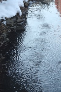 I was attracted to all the water dripping off of rooftops from the melting snow. I loved the resulting ripples in the creek (even if the creek is highly polluted and smells like something defecated.