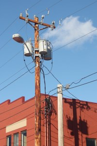 Part of the time, I was really interested in shadows as well as reflections. In this image, I wanted to capture the vivid difference between the red building and the blue sky as well as the pole and its shadow.